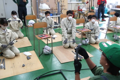 建設業や各職種についてのお話を聞き、実技の指導を受けました。貴重な体験をさせていただき、進路や授業理解につながった様子でした。