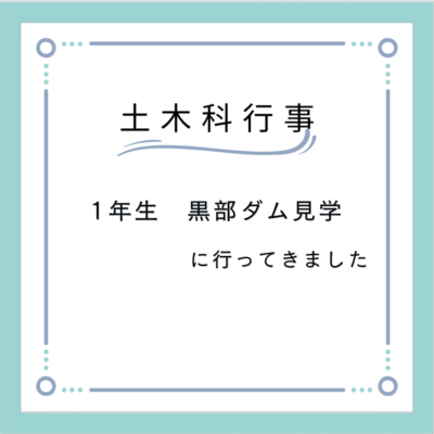 毎年、石川県建設業協会の支援により、建設現場見学を実施しています。また、1年生は高さ日本一のアーチ式ダムである黒部ダム見学に行きます。