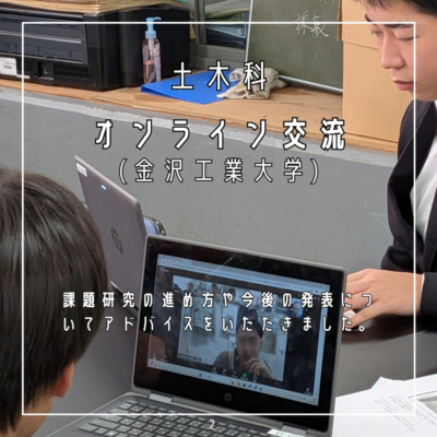 金沢工業大学の学生さんの協力のもと、3年生の課題研究についてアドバイスをいただきました。また学生さんがどのようなことを学び、研究しているのかを教えていただきました。