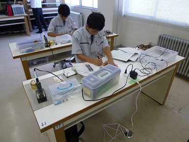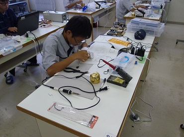 電子回路組立部門は、競技課題として、当日発表となる課題をもとに、電子回路の設計、製作組と、課題に合わせた制御を行うためのプログラミングから成ります。電子情報科は、1年生3人で臨みましたが、力及ばずでした。今後、専門性を磨き、次年度は上位進出目指します。