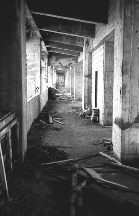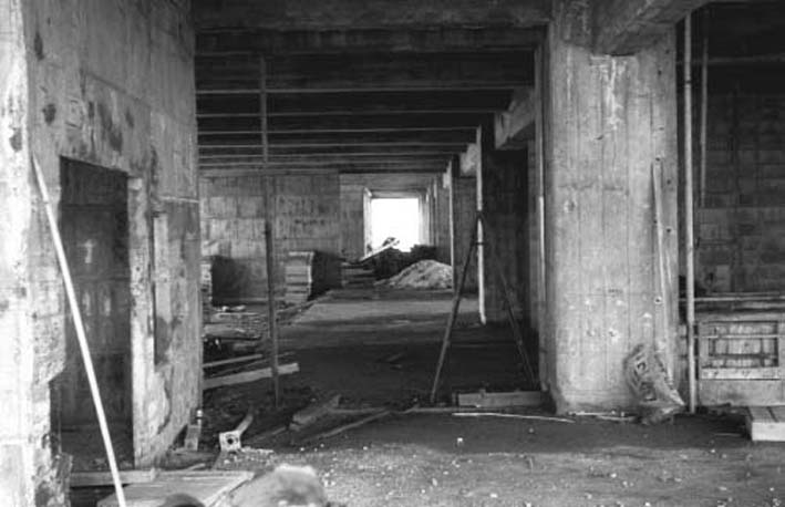 1階 食堂・部室、2階 体育館 となる 東棟内部