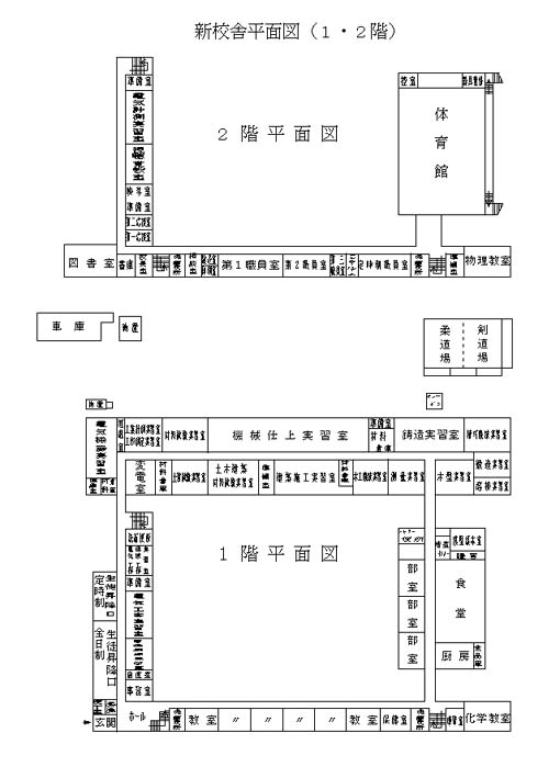 新校舎 平面図 (1,2階のみ、3,4階は省略)