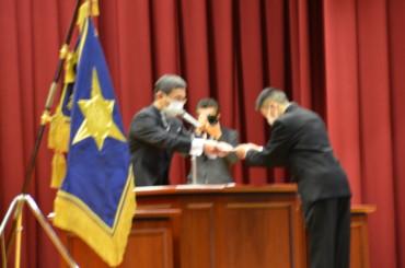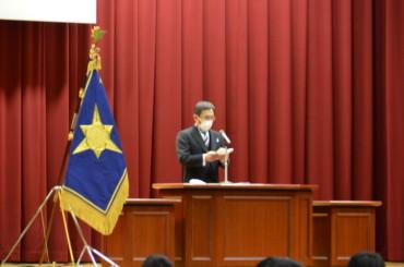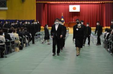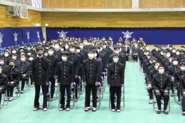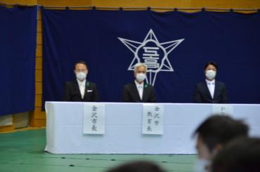 快晴の下、第73回入学式が4月8日(木)本校体育館で行われました。感染対策を徹底したうえで、金沢市長、金沢市教育長、PTA会長にご臨席を賜り、厳粛な式が行われました。