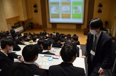1月17日(水)1年生対象のSDGs講座を、金沢工業大学様より講師2名とアシスタント5名に来ていただいて、「講演」と「ゲーム体験」が行われました。