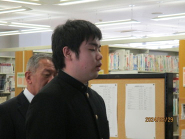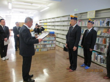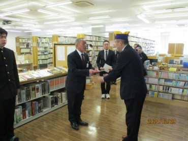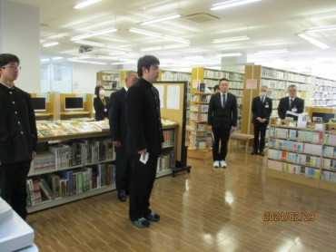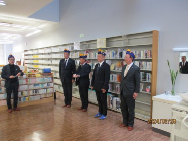 2月29日(木)に本校図書室(ライブラリーセンター)にて金沢城北ライオンズクラブ様より図書カードの贈呈式が行われました。平成24年5月19日に開催されたライオンズ国際協会記念事業において本校に図書カードが贈呈されたことが契機となり、毎年、寄附を頂いています。今年で13回目になります。