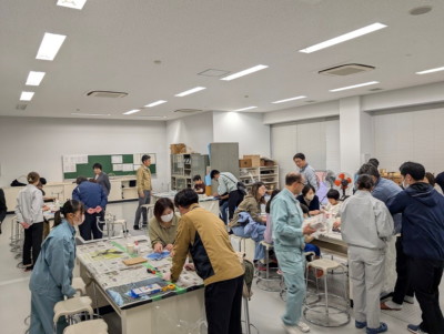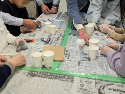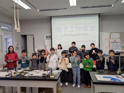 12月14日(土)に近隣の小学生を招いて、親子体験教室を開催しました。建設体験としてテトラポッドづくり、まちづくり、電子工作体験としてデジタル時計づくりを行いました。