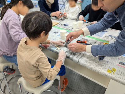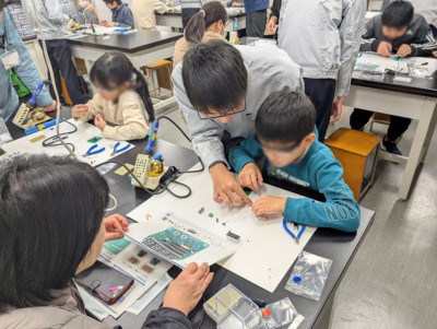 部品のはんだ付けや組み立てなど様々な作業があり、親子で協力して楽しく製作することができました。
