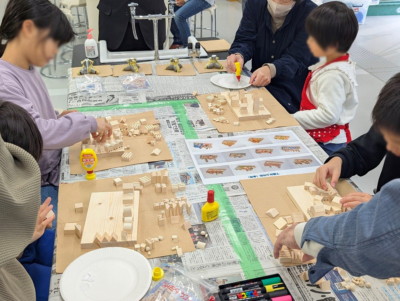 アイデアを膨らませ自由に、親子で協力して楽しく、街を造ることができました。