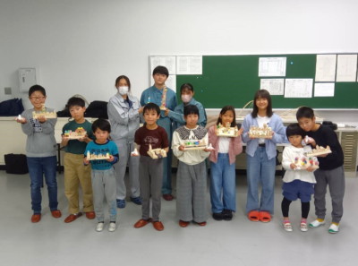 今回の教室を開催するにあたり、土木科1,2年生が補助員として協力しました。子供たちに説明したり指導することの難しさと、完成したときの楽しさを小学生と共有することができました。