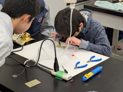 今回の教室を開催するにあたり、マイクロコンピュータ部1,2年生が補助員として協力しました。子供たちに説明したり指導することの難しさと、完成したときの楽しさを小学生と共有することができました。