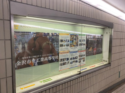 香林坊地下道にて金市工PRポスターを掲示してあります。お近くにお立ち寄りの際は是非ご覧ください。