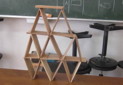 また、のこぎりで切った木端を高く積み上げたり、薄く切った木材でトランプタワーを作ったり、廃材で楽しく遊びました。