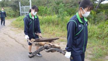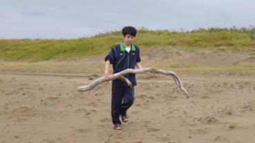 先日、部員全員で海に流木拾いに行ってきました!花いけバトルでは流木を 作品にいかに活かすかも大きなポイントの一つです。みんなこだわりの流木を 見つけることが出来ました。天日でしばらく干し、10 月の中学生体験入部、金 工祭の発表で活用していきたいと思います。