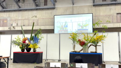 4月23日(木)地場産業展示館4号館にて、高校生花いけバトル(JFTDフラワーデザインコンテストinいしかわ)が開催されました。石川県内より本校生花部と金沢西高等学校さんが参加しました。