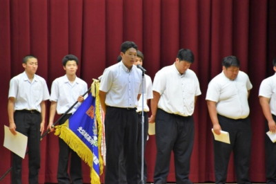 7月2日から8日まで、アルゼンチンのブエノスアイレスで開催される「男子U18水球世界選手権2024」の日本代表メンバーに、本校水球部2年生2名が選出されました。6月26日(水)表彰伝達後に激励会が開催され、学校長や全校生徒から激励されるとともに、大会への決意や抱負を述べました。