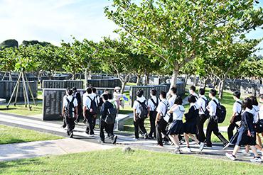本日は2隊に分かれて、沖縄県平和祈念公園・平和の礎・黒百合の塔(献花)・ひめゆり平和祈念資料館(証言ビデオ鑑賞)・美ら海水族館を訪れました。