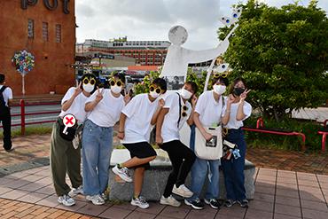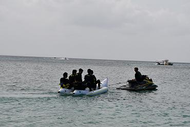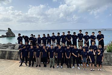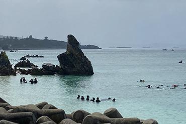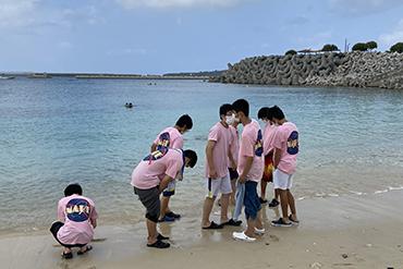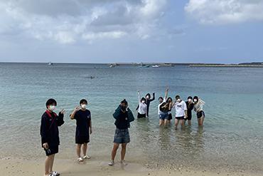 本日の旅程は、崎本部(さきもとぶ)ビーチでマリン体験・午後からクラス別行動です。