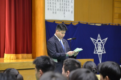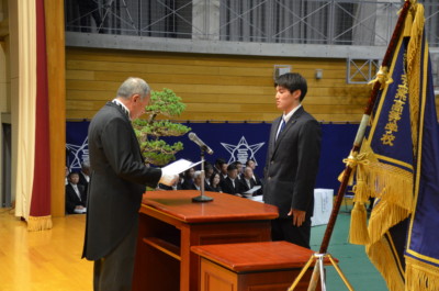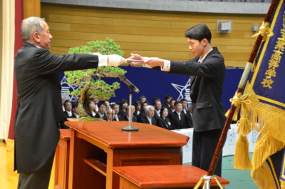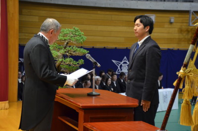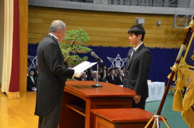 保護者、在校生が出席し、来賓に、金沢市副市長、金沢市議会議長、金沢市教育長などにご臨席を賜り、厳粛な式が行われました。式後、各教室に戻り、担任から生徒へ卒業証書が授与されました。