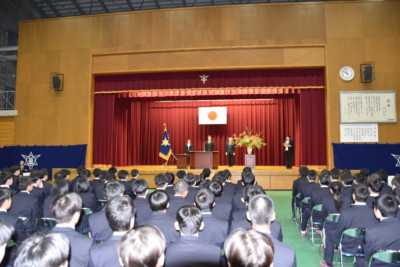 始業式では、校歌斉唱の後、校長先生、教務部、生徒指導の先生からお話をいただきました。