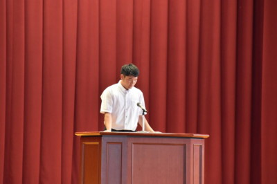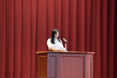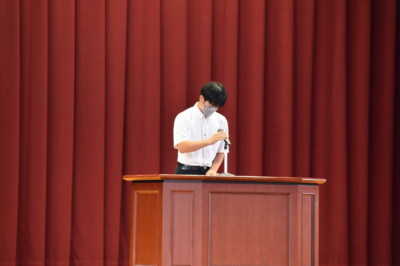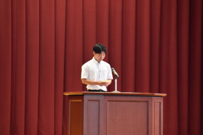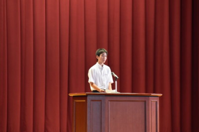 今回は、会長候補2名(定数1)、会計候補3名(定数2)は選挙戦となりました。立会演説は、立候補者が1~2分を目安に演説を行い、自分の思いを全校生徒に伝えました。