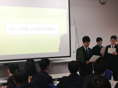 清書後、各グループで、自分の書いたものの紹介、他人の良い点、自分の改善点など、共有をはかりました。最後に各班の代表者が発表しました。